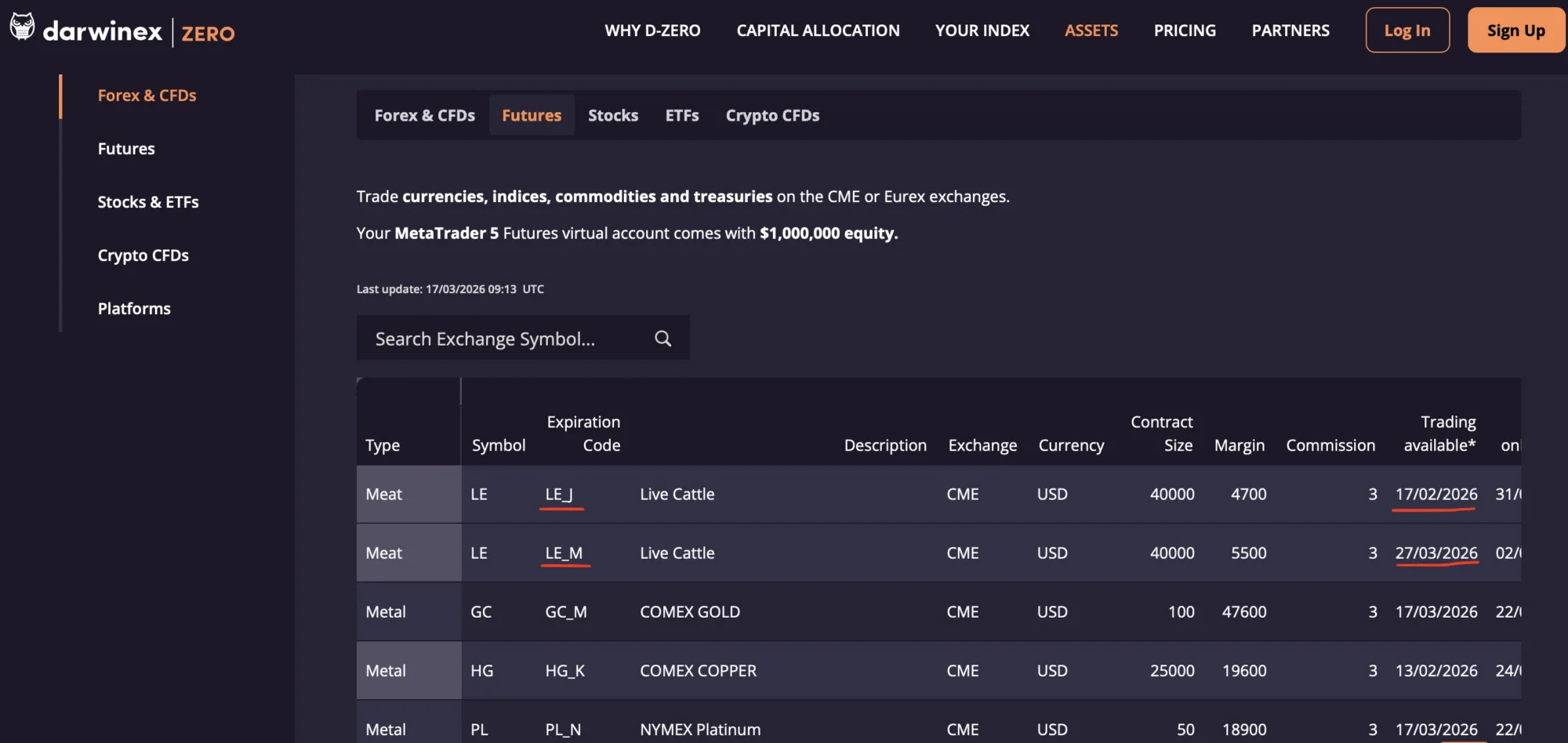 On Darwinex Zero, this is handled through the Assets page. That detail is important, because a strategy can work perfectly well on the source CFD account, yet differences can still appear if the futures side is not rolled correctly or in time.